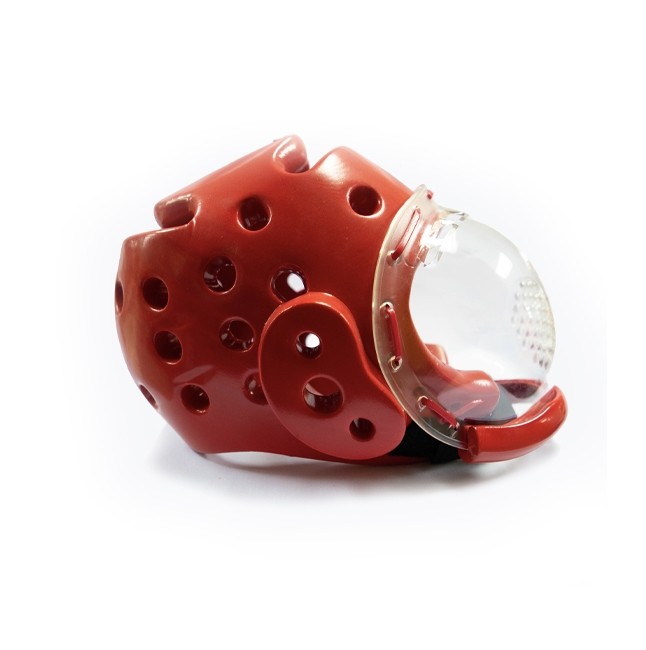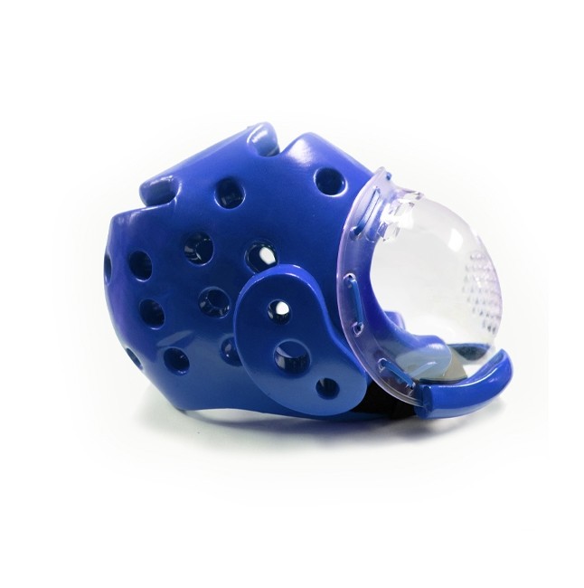 The head guard with mask is ideal for karate.